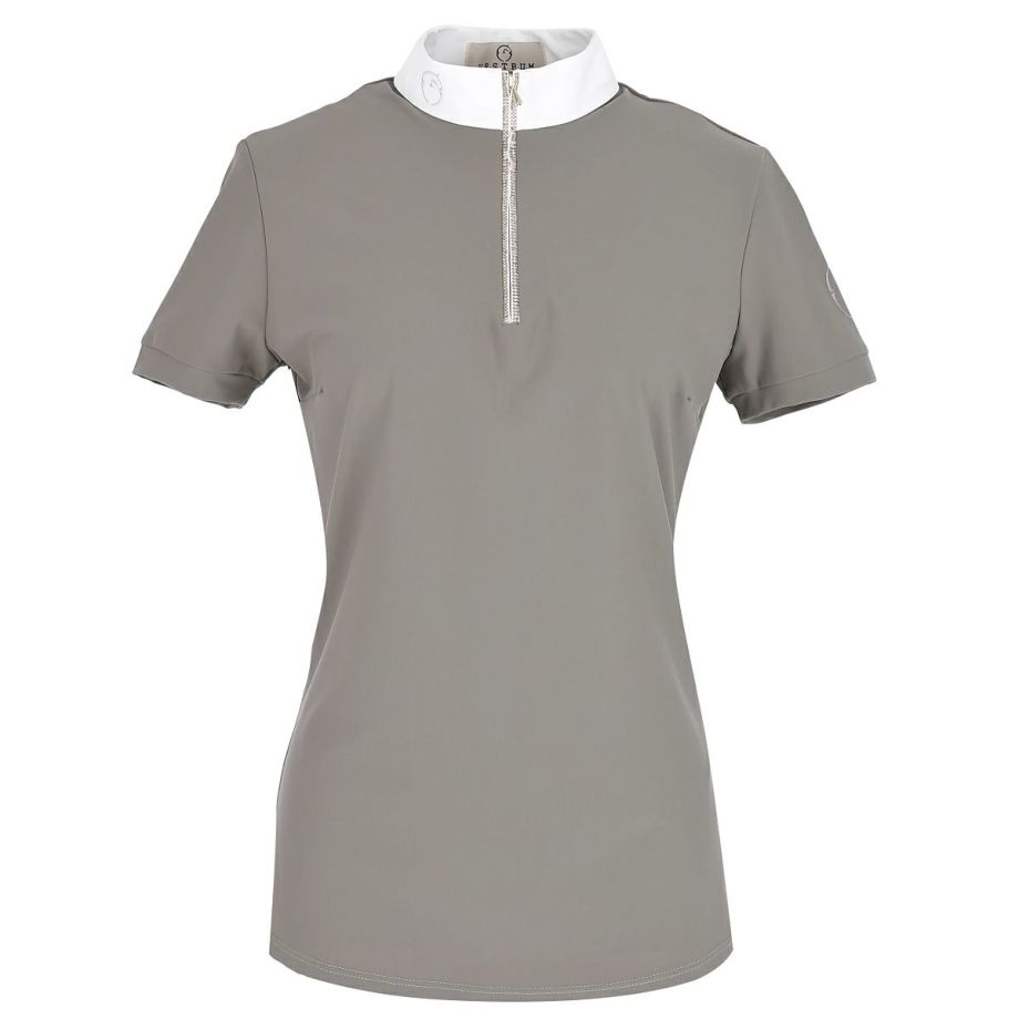 ・襟部分はコットン混素材で快適な肌触り、その他の部分は伸びが良く肌触りの良いハイグレードな機能性生地を採用。・フロントファスナーにゴールドのスタッズを使用し、ゴージャスな印象。・襟中央にシルバーグレーのロゴ刺繍、左袖にVESTRUMのロゴプリント。・通気性、速乾性に優れ、快適な着心地が持続。・ウエストシェイプでスッキリとしたシルエット。・襟元にジップがあしらわれ、着脱が容易。