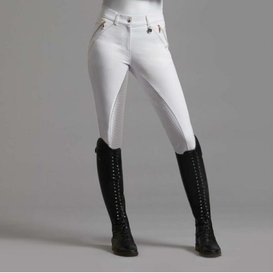 ・ピンクゴールドの煌めきで華やかに仕上げた乗馬用のキュロットフルグリップ。・ジップやクリスタル、ステッチのピンクゴールドがアクセント。・高い伸縮性を誇るテクニカルファブリックは通気性もよく快適です。・すべりにくく、取れにくいシリコングリップを採用。・足首周りは伸縮性のあるストレッチ素材で着脱がスムーズ。・ジップ付きポケット:フロント2ヶ所、バック2ヶ所、計4ヶ所