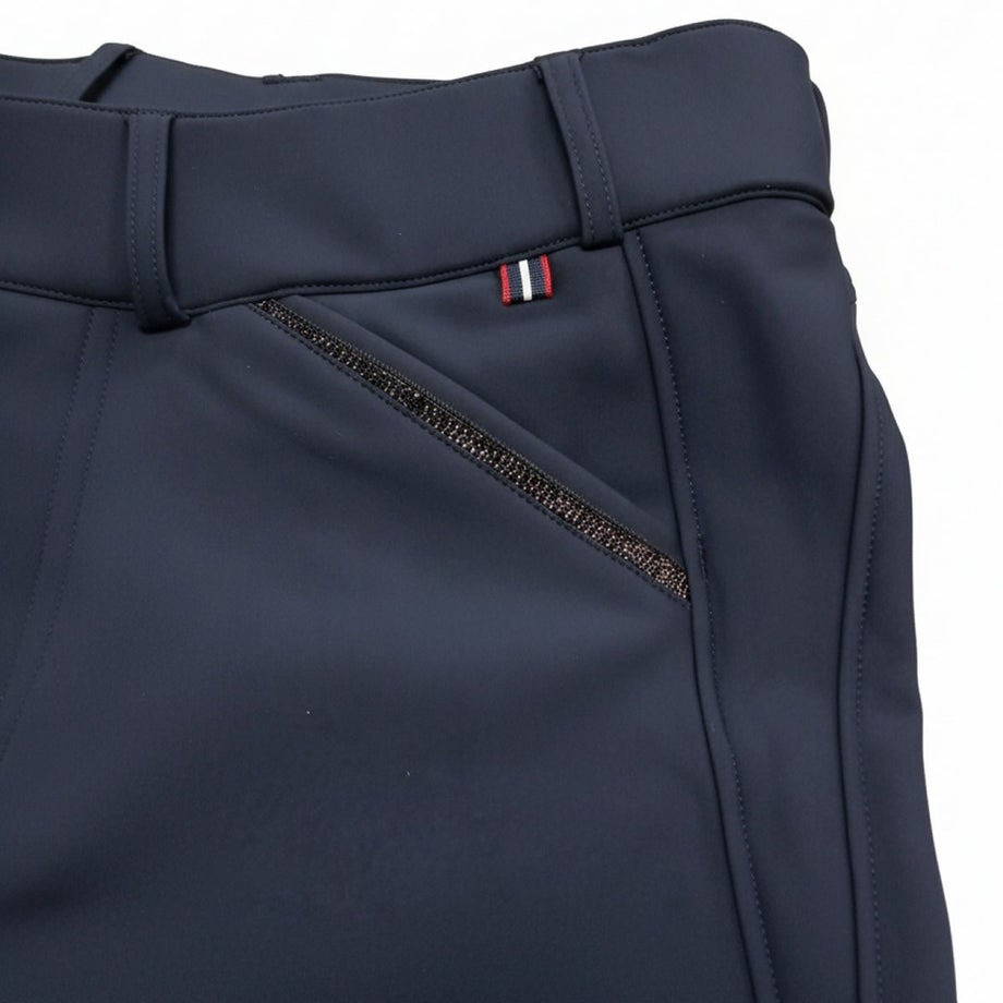 ・内側が柔らかく起毛され、秋冬の騎乗に最適。・右側に便利なスマホポケット付き。・全面左右のスリットポケットとスマホポケットには、ブラックラメ入り切り替えを配置。・背面切り替え布の部分にフラップ風フェイクポケット付きで、後ろ姿にさりげない華やかさをプラス。・ベルトループ中央にCavalloステアラップの高級感ある型押し入り。・左腿にCavalloロゴのエンボス加工でさりげないブランド感を演出。・裾は伸縮性のある仕様で、ブーツインもスムーズ。・Cavalloオリジナルシリコングリップで、安定したライディングをサポート。