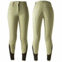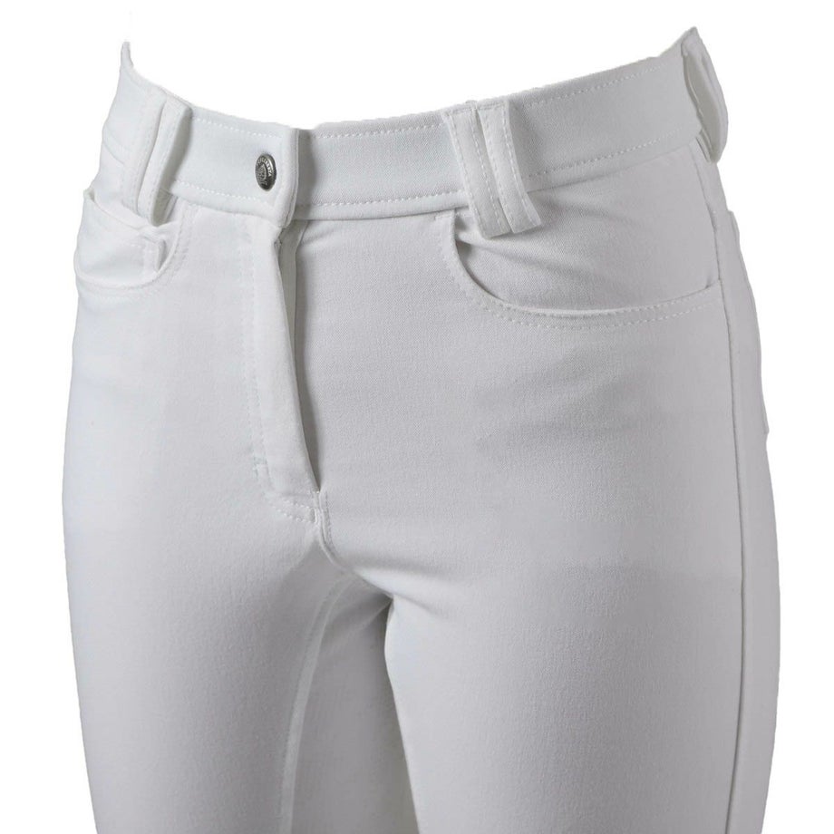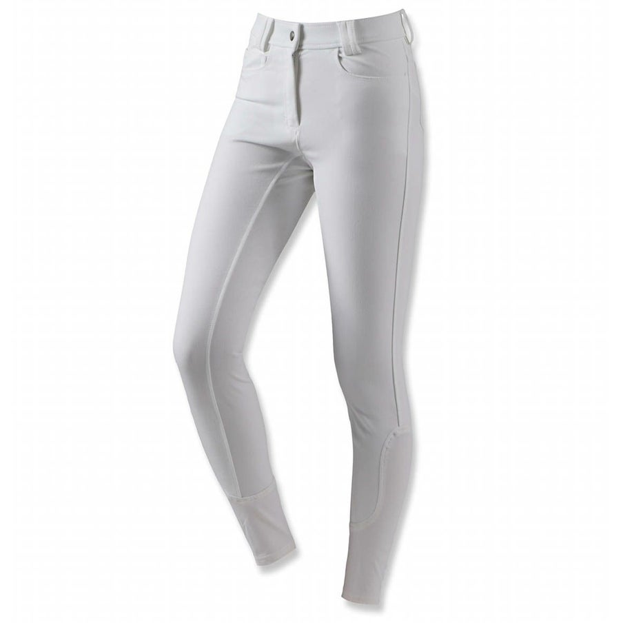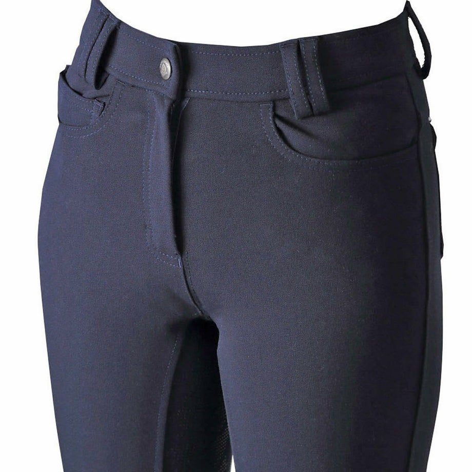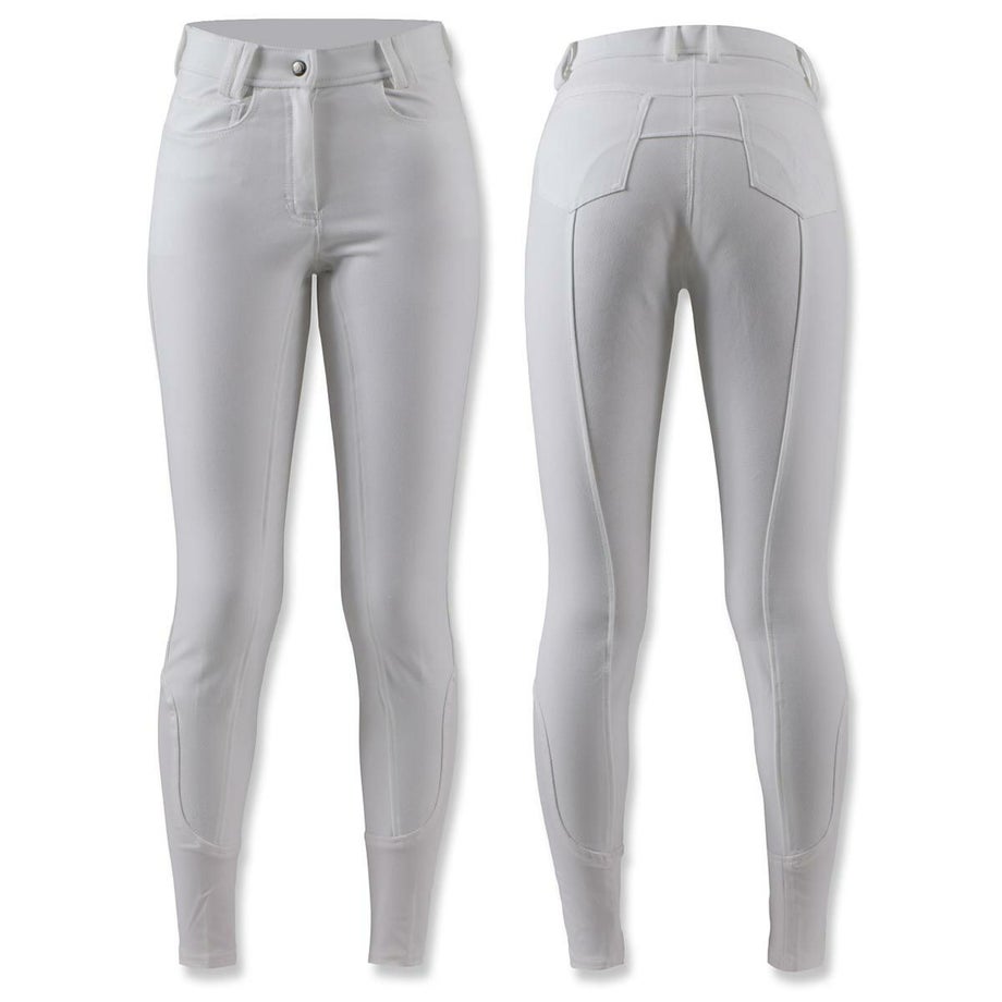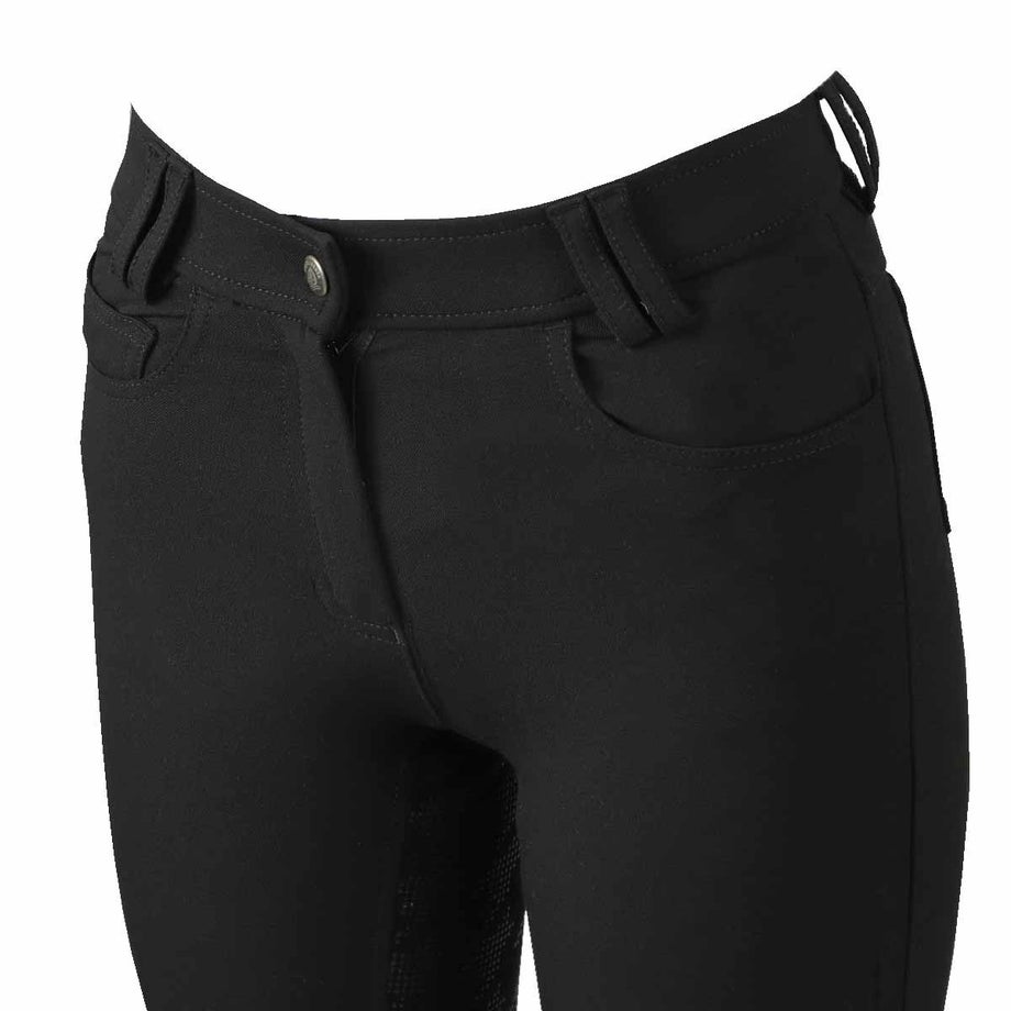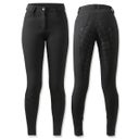 しっかりした丈夫な生地なのに伸びがよく、身体にフィットして動きやすいとユーザーから高く評価されているベストセラーのオールシーズンキュロット。コインポケットやバックポケットのステッチなどデニムっぽさを取り入れながらカジュアルすぎずシンプルで落ち着いた雰囲気。バックポケットステッチはよく見ると馬の背に乗った鞍のデザイン。さりげないこだわりです。薄すぎず厚すぎず、オールシーズン着まわせる使いやすさ。ビギナー・ベテランを問わず1着は持っていたいアイテムです。・人気のシリコングリップを採用従来の合皮タイプに比べ、グリップ力が大幅に向上し、ごわつきがなく、伸びやすく、通気性や吸汗性も高いシリコンタイプは、段違いの使いやすさと履き心地。今まで合皮だった部分が通気性の良い生地になったので、涼しさも大幅にUPしました。シリコンプリントは英国伝統のハウンドトゥース柄。エレガントでクラシックな印象のデザインです。シリコンはグリップが効きすぎると逆に使いにくくなることもあります。本製品では様々なシリコン形状をテストして、ちょうど良いグリップに調整しました。・日本人の騎乗姿勢にあったデザイン熟練デザイナーとパタンナーが、生地の特性を考慮して型紙からデザインしたキュロットは、姿勢の美しさと動きやすさを両立しました。ウエストのフロントが浅くバックが深いデザインは、騎乗時の座り込んだ姿勢でウエストをきっちりカバー。股部分を工夫してまたがりやすく、ひざ部分にゆとりをもたせ曲げやすくし、騎乗のしやすさを追及したシルエットに仕上がっています。・高い縫製技術を活かしたフィット感生産はヨーロッパ向けキュロットを手がけるメーカーが協力。長年培われた技術が活かされた縫製は耐久性とフィット感が抜群です。・素材へのこだわり生地やボタンなど全ての素材にこだわりました。ボタンは騎乗に適したものをドイツから取り寄せ。生地は国内の専門機関による厳しい試験に合格したものを採用しています。・足首周りはストレッチ素材で快適足首周りにストレッチ素材を採用。ふくらはぎまでストレッチ素材を伸ばすことで抜群のフィット感と快適な履き心地を実現しました。