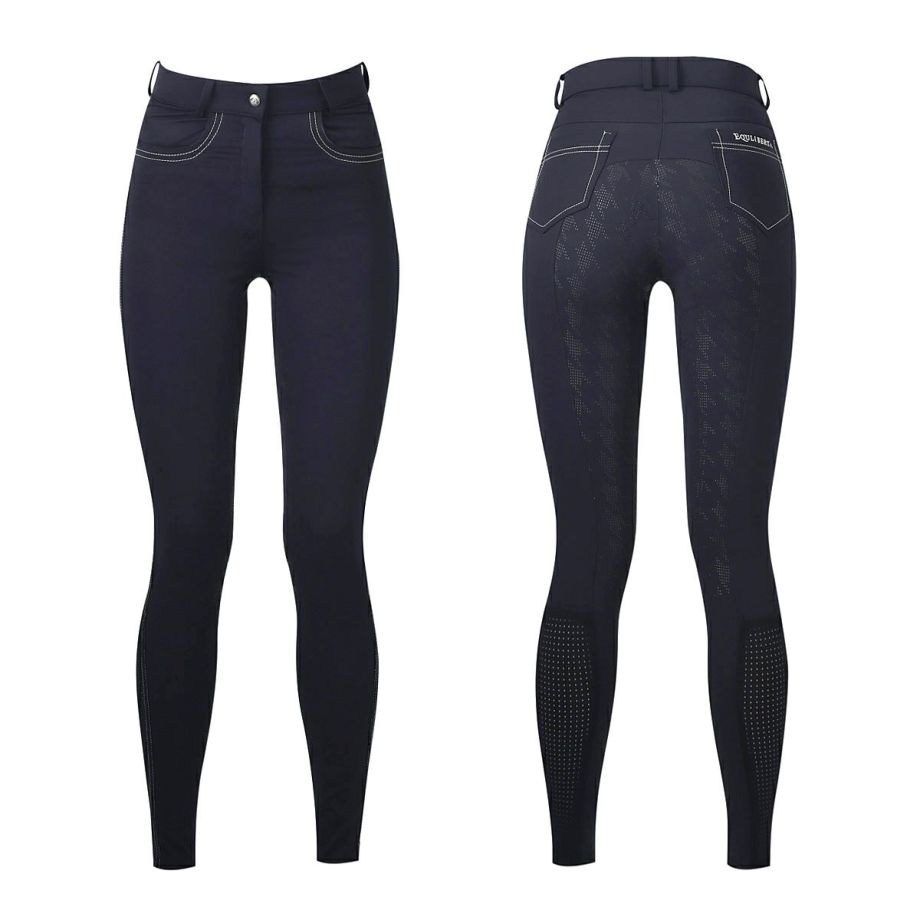 ・快適さが長続きするストレスフリーの乗馬用サマーキュロットフルグリップ。・高通気性、吸水速乾、接触冷感があるサラリとした生地。・グリップ力もデザイン性も満足なシリコングリップのすべり止めを採用。・シリコンのプリント柄はエレガントな英国伝統のハウンドトゥース柄です。・足首周りにはパンチング加工のある通気性のすぐれたストレッチ素材をあしらい、着脱しやすく快適にサポート。・ネイビー色は濃いめに仕上がっており、ネイビー×ホワイトステッチが映えます。・ウォールナット色はベージュのステッチと刺繍、同トーンでやわらかい雰囲気に。・ポケット:フロント2ヶ所、バック2ヶ所。・落ち着いたトーンですがポケットまわりにステッチを施してデニムっぽいテイストを取り入れたオシャレなデザイン。