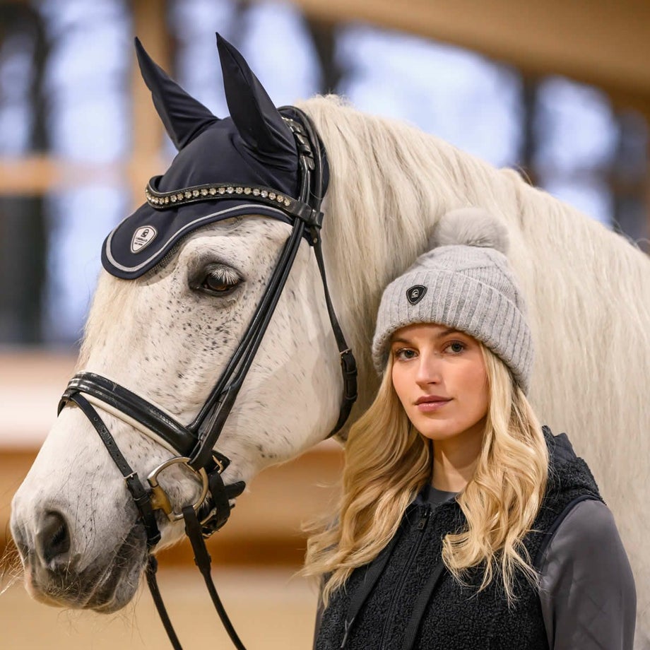 ・立体感のあるリブ編みニットで、上品な印象のデザイン。・本体と同系色のフェイクファー製ボンボン付き(取り外し可能)。・フロント中央にあるCavalloのロゴラベルが、さりげないアクセントに。・内側は柔らかなフリース素材で、暖かく快適なかぶり心地。・秋冬のコーデに映える機能性とデザイン性を両立。