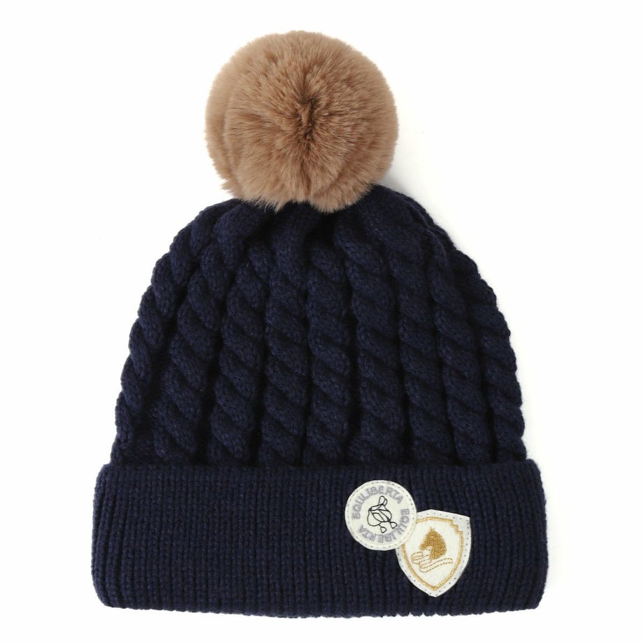 ・技ありなボンボンやWワッペンで個性が出せるニットキャップ。・ニュアンスのあるケーブルニットと手触りのよいシックな色味のボンボン。・額にあたる裏部分にはソフトなフリースをあしらい、かゆくならないよう設計。・乗馬女子のハートをくすぐる鞍と馬のワッペンの重ね付けがポイント。・ベーシックなベージュ、ネイビーとコーデに取り入れやすいワインから選べます。