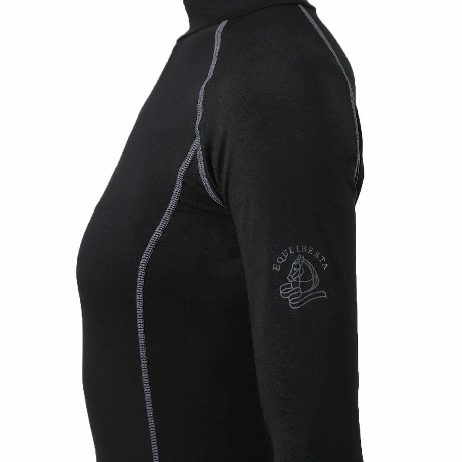 大人気のEQULIBERTAスポーツインナーに吸湿発熱機能が付いたウィンターインナーが登場!薄くて動きやすいのに、暖かくて防寒性も抜群。さらに丈夫でやわらかな肌触りの冬用インナーです。厚着で窮屈な冬の乗馬を、暖かなインナーで自由で快適に!・吸湿発熱&保温身体から出る汗などの水分を吸収して発熱するハイテク素材。薄手の素材ながら抜群の暖かさです。・しっとりなめらかなやさしい肌触り薄いのに柔らかくフワフワした、しなやかで優しい肌触り。ラグジュアリーな質感は、ずっと触れていたくなるほどです。・軽量で上質な素材極薄素材なので、身体にきれいにフィットしてスマートなシルエットに。着ぶくれしたくないけど、寒いのもイヤ。そんなおしゃれを楽しみたい方に最適です。・防寒性を高めたデザイン熱が逃げないよう程よくフィットさせたハイネックデザインは、冷たい風から首元を守ります。・締め付けがなく自由で快適締め付けが無く適度にフィットしたデザイン。肌に直接触れるものだから、縫製には伸縮性と保温性のある肌当たりの良いウーリー糸を使用しました。・日本人の体型と騎乗の動きに最適化身体の動きにあわせた適度なフィット感のデザイン。伸縮性が非常に高い生地なので、激しい動きや急激な動きに突っ張らず瞬時にフィットします。・普段使いにも動きやすく暖かい薄手インナーなので、普段使いのインナーにも大活躍。