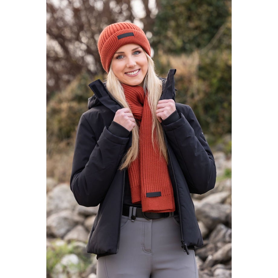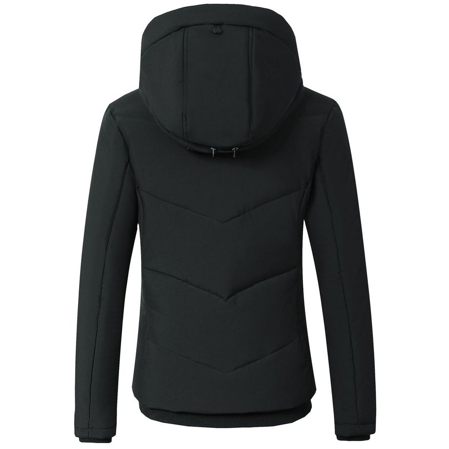 ・ラグジュアリーな中綿入りで、心地よい暖かさをキープ。・ロゴ入りのハイネックカラーが首元をしっかり保護。・フードはドローコードで絞りの調整ができ、背中に付いているボタンで固定も可能。・襟部分にはフードを取り外しできるファスナーと、フード上部に折り畳めるファスナー付き。・女性らしいウエストシェイプの美しいシルエット。・2WAYファスナー仕様で動きやすさも抜群。・両サイドにハンドウォーマーポケット、内ポケットもジップ付きで便利。・袖口はゴム仕様で冷気をシャットアウト。・通気性が高く、運動中もムレにくく快適。・耐水圧に優れ、防水性も高いので雨の日も乗馬も安心。