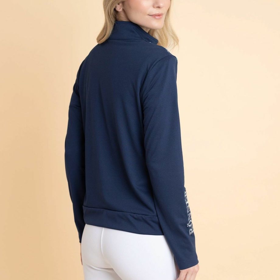 ・ブランドの人気ジャケットとして、多くのファンに愛され続ける名品。・オリジナル刺繍が、上品で印象的なアクセント。・ストレッチ性のある機能素材で動きやすく快適な着心地。乗馬や日常使いにも最適。・シーズンレスで使える万能デザインなので、一枚で春・秋に、重ね着で冬にも対応。年間を通じて活躍します。・カジュアルからエレガントまで、シーンに応じて幅広くコーディネート可能。・ネイビー&ホワイトの洗練されたカラーリングは清潔感と落ち着きがあり、大人の女性にもぴったり。
