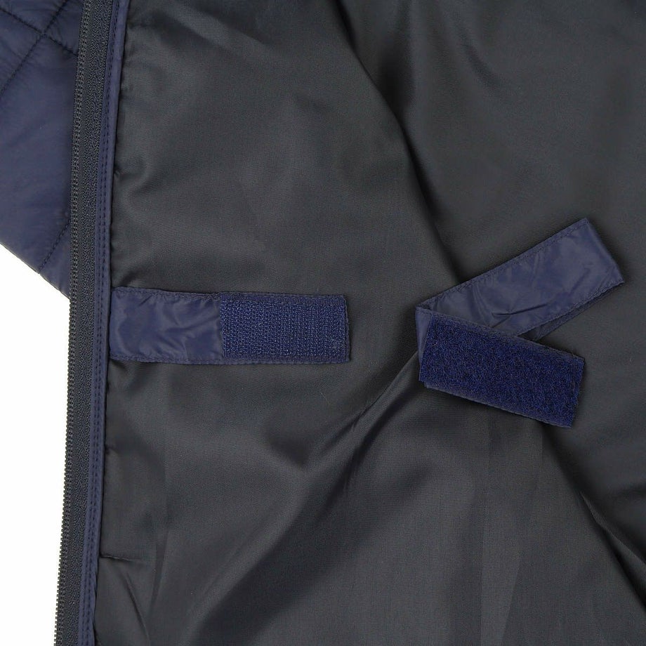 ・騎乗時に快適な仕様でデザインされた乗馬用の中綿入りオーバースカート。・とても軽くソフト。ウエストもゴムなのでラクな着心地。・前後のファスナーを開ければ、馬にまたがる時も邪魔になりません。・フロントファスナーは両開きのダブルジップです。・下腹部や下半身が保温されると、身体全体が暖かくなります。・内側のストラップで足に固定すれば騎乗中もばたつかず、しっかり防寒できます。・ご家庭で手洗いできるのも嬉しいポイント。・フロントのボタン付きポケットはやや深めで、ハンドウォーマーにもなります。・サッと着れて身体全体が暖かくなるので、乗馬以外の用途にもおすすめ。ロードバイク、ゴルフ、ジョギングなどのアウトドアはもちろん、軽くて柔らかいのでお部屋の中やちょっと外に出る時に着るアイテムとしても活躍。