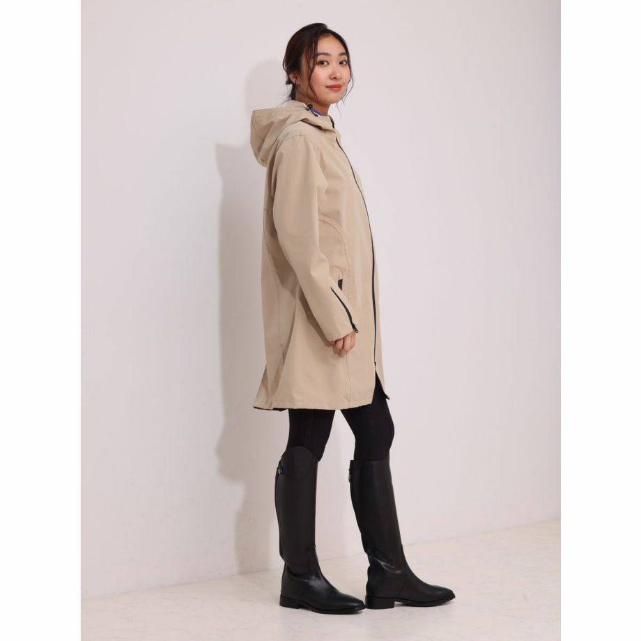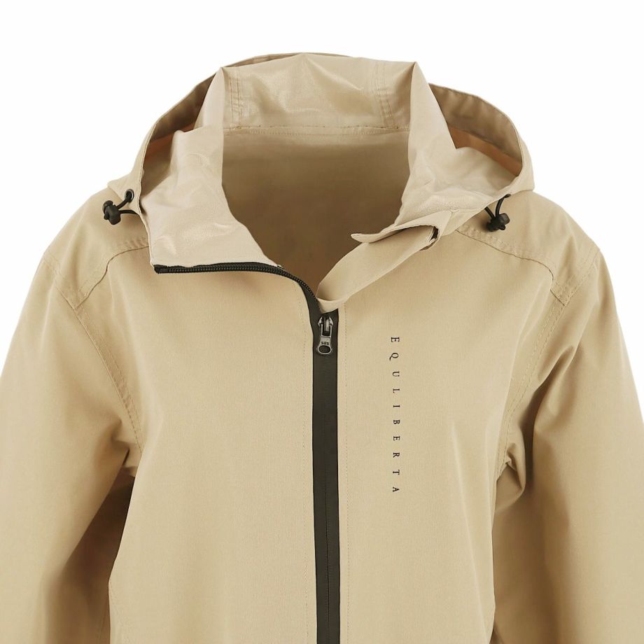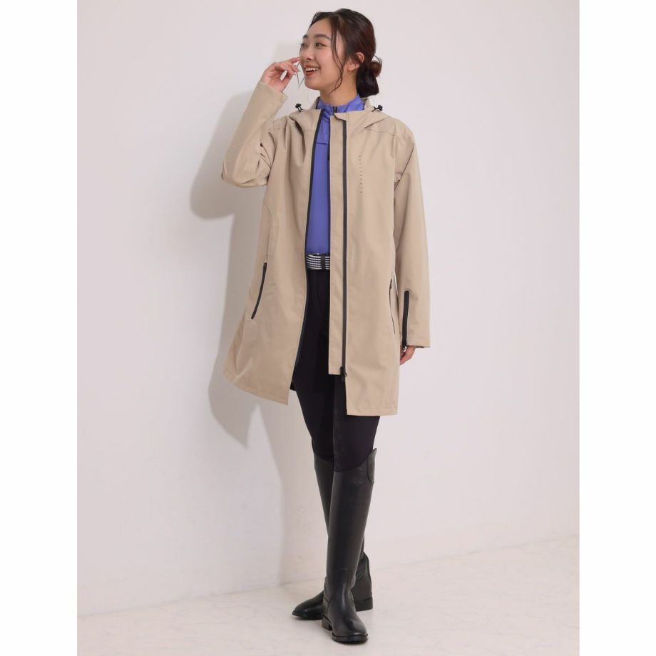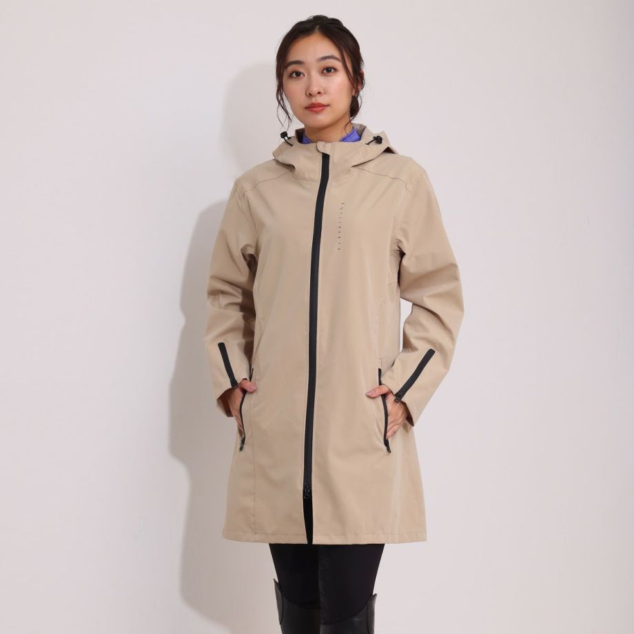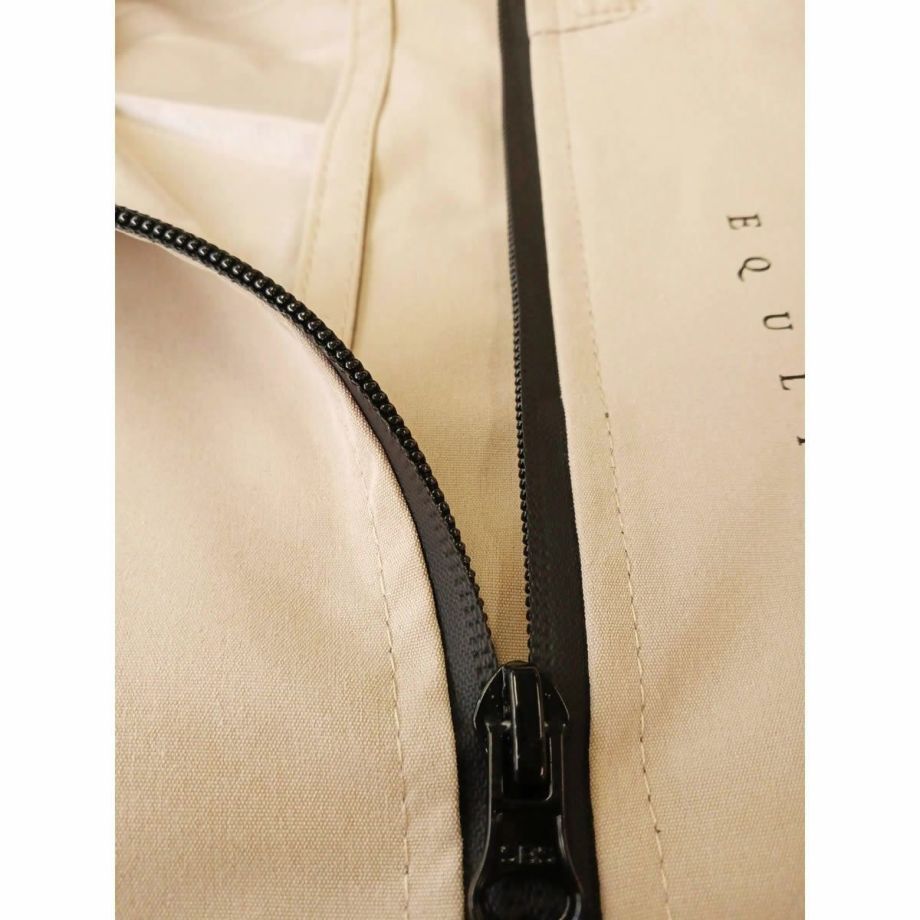 ・騎乗時の動きを妨げないスリムフィットデザイン日本人の体形を考慮したパターンで、スマートなシルエットながらも動きやすさを追求しました。騎乗時の姿勢や動きを妨げにくく、もたつきを抑えることで、快適な騎乗をサポート。・耐水圧8,000㎜、優れた防水・撥水効果で雨をシャットアウト特殊加工を施した生地が、雨水をしっかりと弾きます。水滴が玉のようになり、生地に染み込むことなく滑り落ちるため、悪天候の中でもライダーを濡れから守り、集中力を維持します。・騎乗を考慮した機能性と細部へのこだわり中央には太くスタイリッシュな黒いファスナー、左胸部分には縦書きの「EQULIBERTA」ロゴがさりげなく配され、ブランドの個性を際立たせます。両サイドには縦向きのファスナーポケットがあり、小物収納にも便利です。袖口の黒いファスナーは、デザインのアクセントとなり、視覚的な引き締め効果も発揮します。・ユニセックスで普段使いにも対応する万能デザイン男女問わず着用できるユニセックスデザインで、普段使いにも最適です。シンプルながらも洗練されたベージュカラーは、どんな服装にも合わせやすく、急な雨の日の外出やアウトドアシーンでもおしゃれさを損ないません。機能的ながらもタウンユースに馴染むデザインで、あなたのワードローブに新たな一枚を。