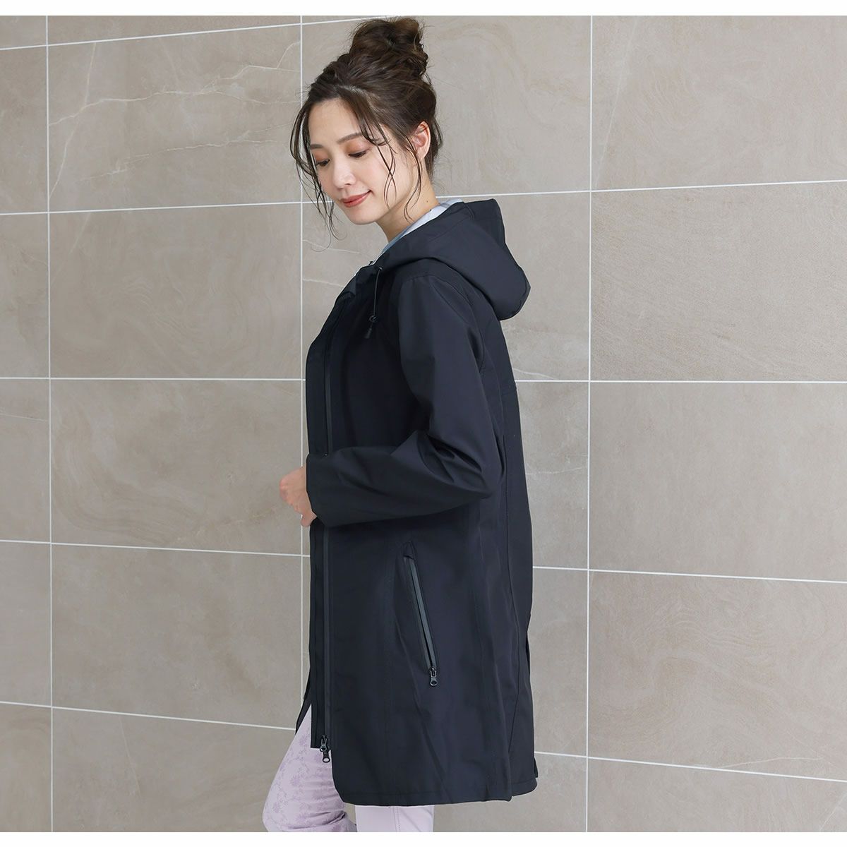 ・機能性とデザインにこだわった秀逸な乗馬用のレインコート。・雨の日のレッスンはもちろん、通勤などにも使えます。・軽いけどしっかりとした丈夫なポリエステル素材。・スタイルがキレイに見えるウエストシェイプのデザイン。・フロントの開閉を調節できるダブルジップ。・大きく開くバックベンツをそなえます。・袖口にもジップをあしらい着脱がスムーズ。・ジップ付きポケット:フロント2ヶ所。・耐水圧 2000mm中程度の雨にも耐えられる耐水圧生地で仕立てました。・透湿性 3000g/㎡・24h。体から出た汗の水蒸気を逃がし、ムレにくく快適な設計です。・撥水・防風なども備えます。