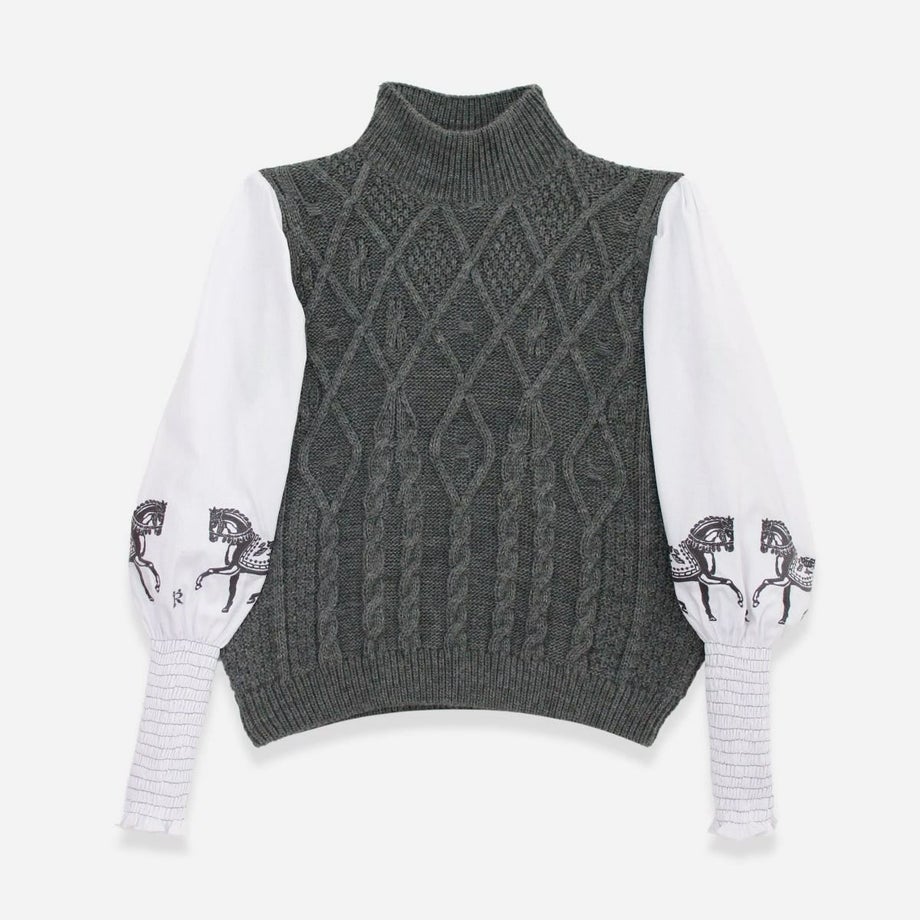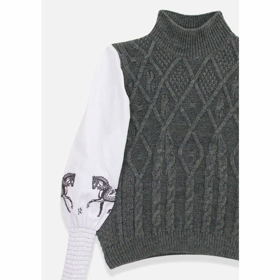 ・馬術にインスパイアされたエレガントでタイムレスなデザイン。・ケーブルニットのクラシックなデザインが、暖かさと洗練さを提供。・袖に施された美しい刺繍が、上品な印象を演出。・レイヤードスタイルが主役アイテムとしても活躍。・快適な着心地を実現する軽やかな素材を使用。