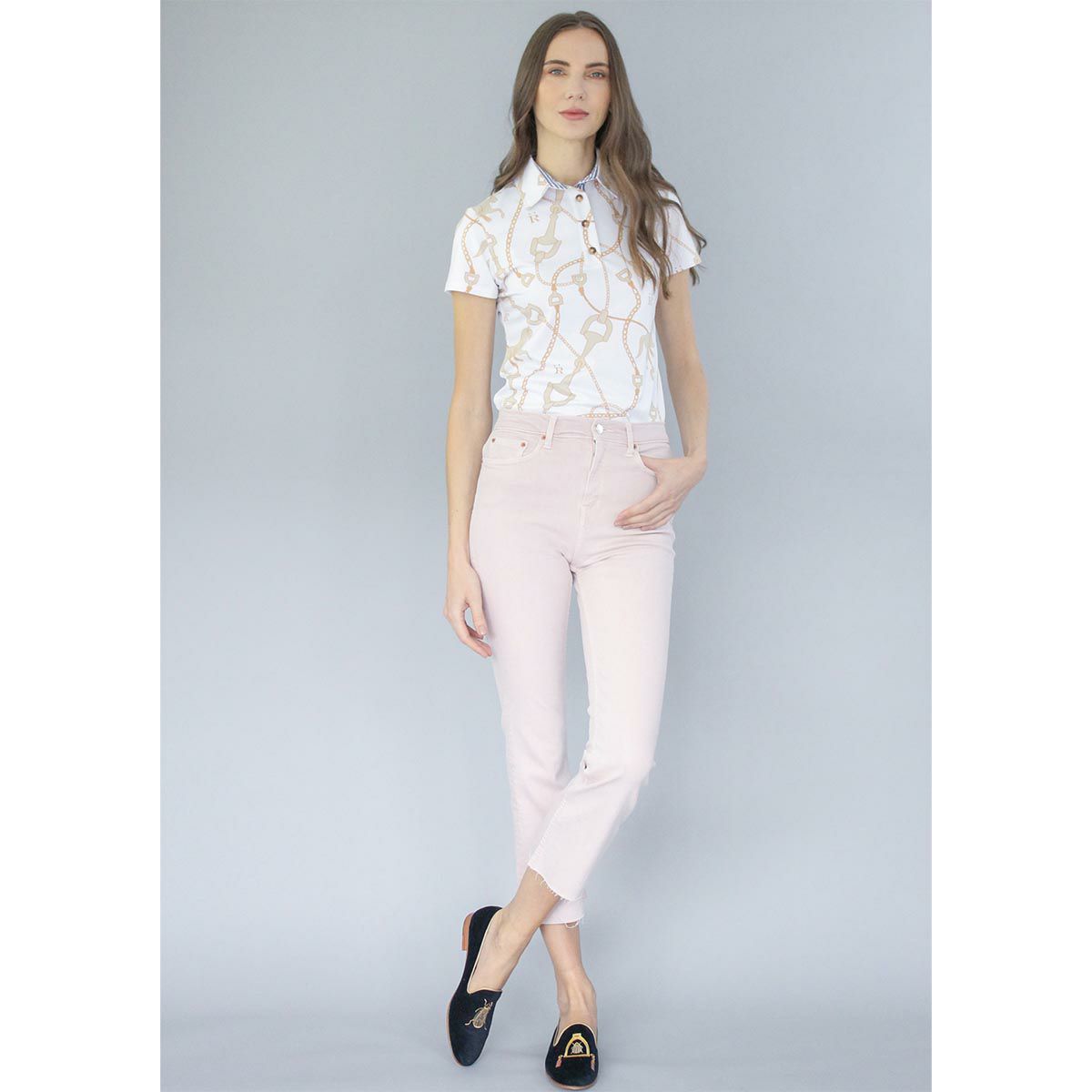 ・クラシックなスタイルですが高機能がうれしい乗馬用のポロシャツ。・とてもエレガントにデザインされた馬具と馬のオリジナルプリント。・吸湿速乾性に優れた快適な素材。・伸縮性がすぐれた生地で、軽くてなめらかな肌ざわりです。・ウエストシェイプでスタイルをキレイに見せてくれます。・オリジナルのファブリックケースに入れてお届けします。