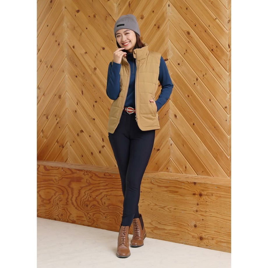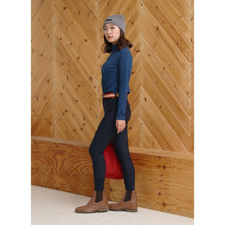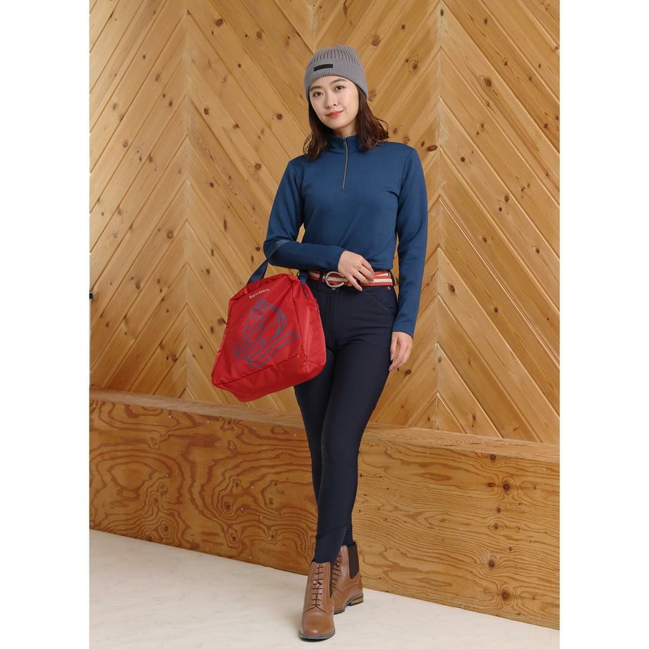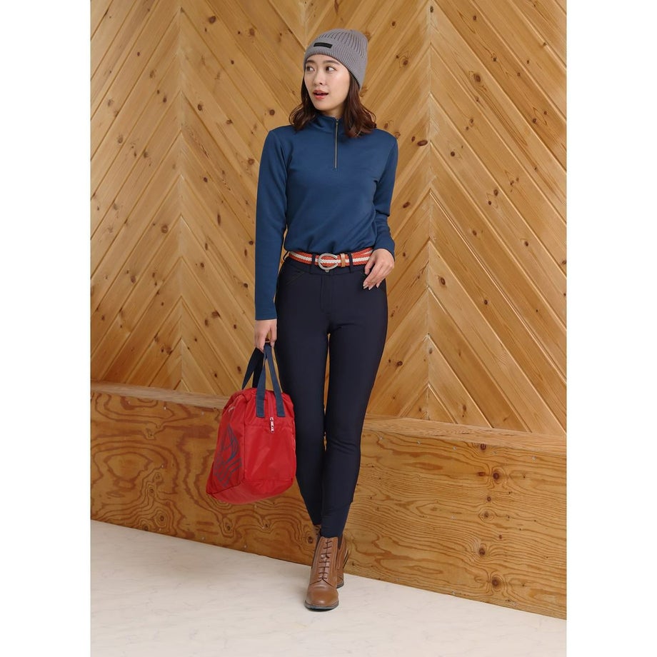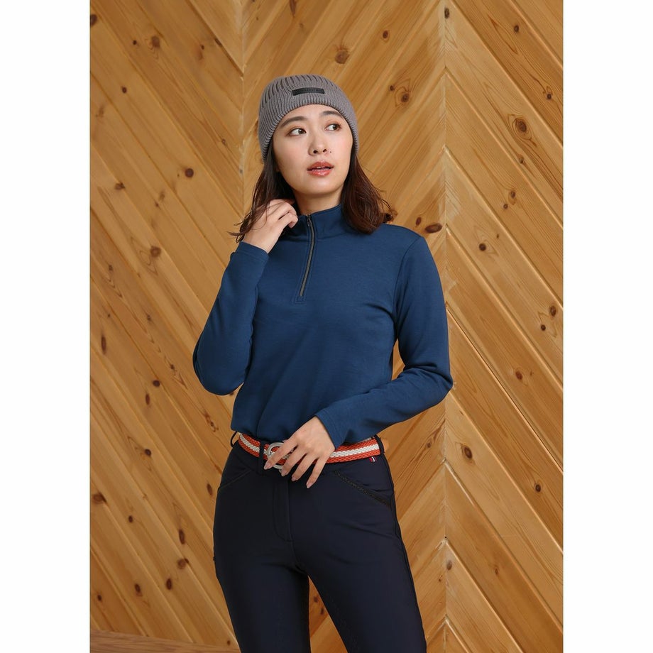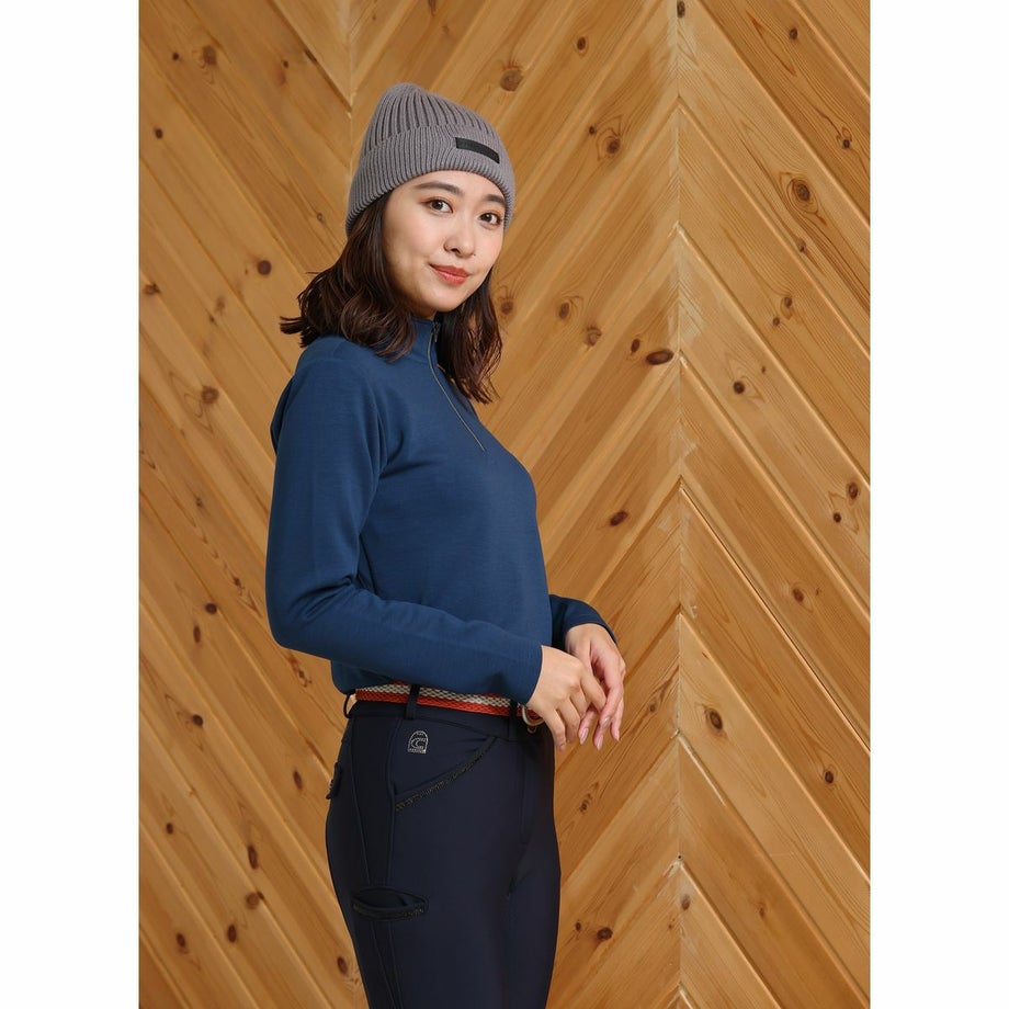 ・思わずふれたくなるような上質感のある柔らかな肌触りの長袖ハーフジップアップカットソー。・抜群のストレッチ性のある生地が体の動きに心地よくフィットし、ストレスを感じさせません。・温かみのあるほど良い厚みの素材ながら、裏起毛ではないので秋口から春先まで長いシーズン着用いただけます。・程よくフィットするハイネックのデザインが、首元への冷気の侵入を軽減し、顔周りをすっきりと見せます。・派手すぎず、上品な輝きを放つアンティークゴールド調のファスナーがクールなカラーにさりげなく映えます。・裾に施した小さなピスネームがさりげなくブランドをアピール。・後身頃から脇にかけて入る切替ラインが、体を立体的に見せ、きれいな後ろ姿を演出。・背中のバックプリントがスポーティ、且つモードな雰囲気を高めています。・乗馬はもちろん、ゴルフやテニス等その他のスポーツ、キャンプや登山等様々なアウトドアシーンでも活躍。