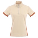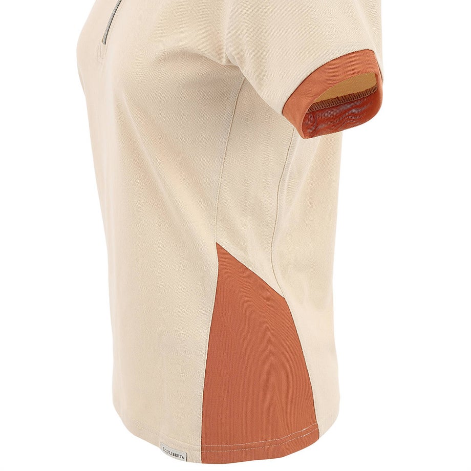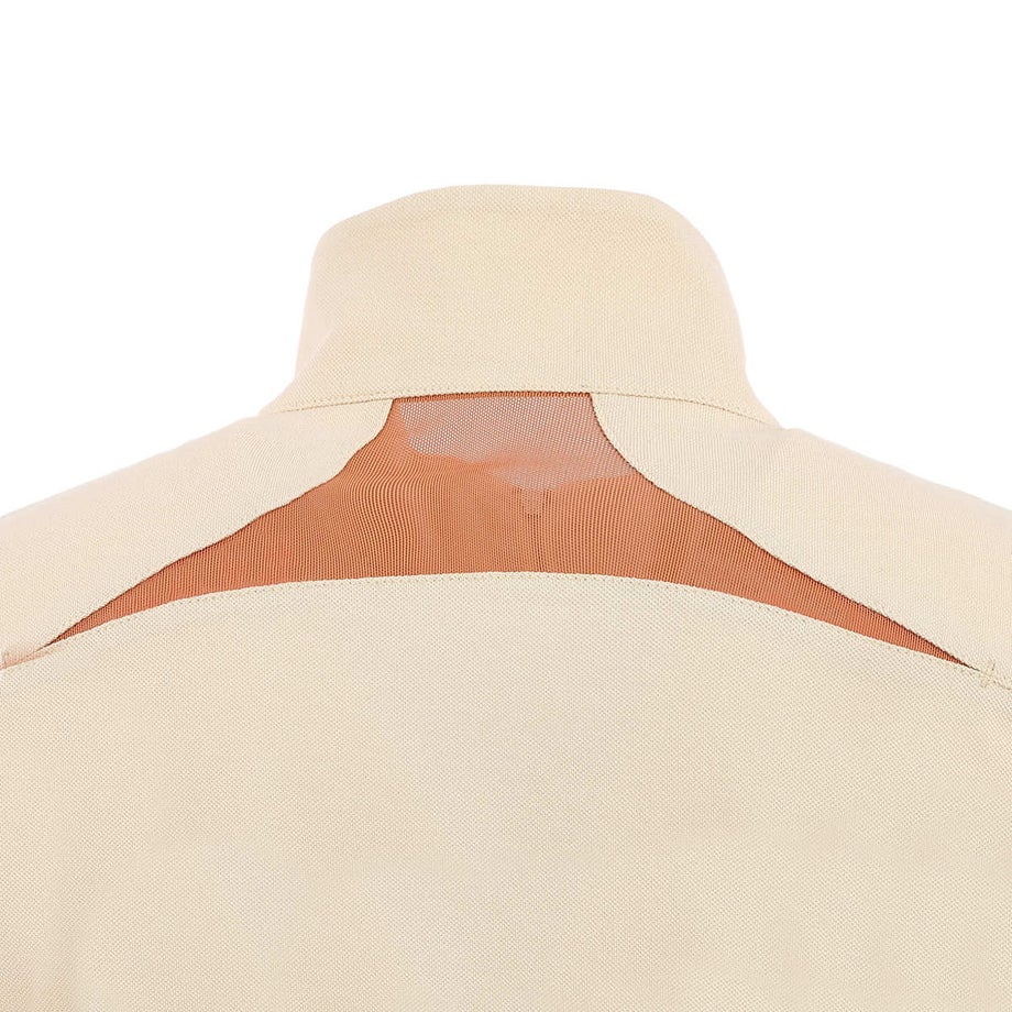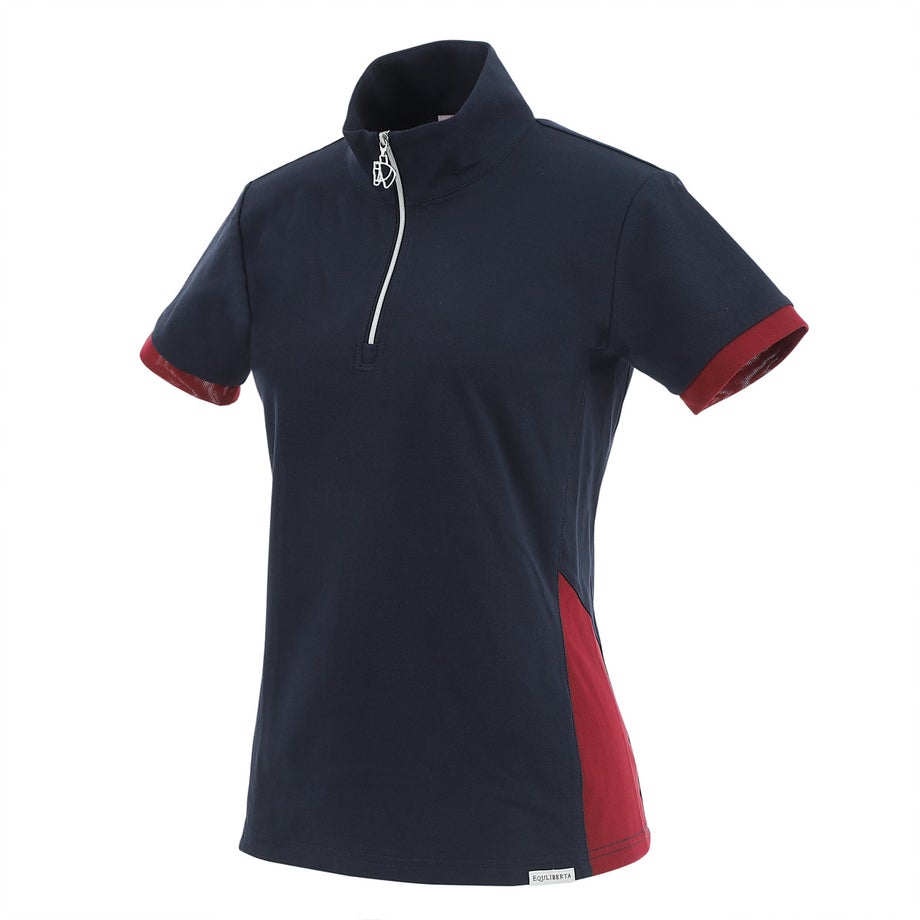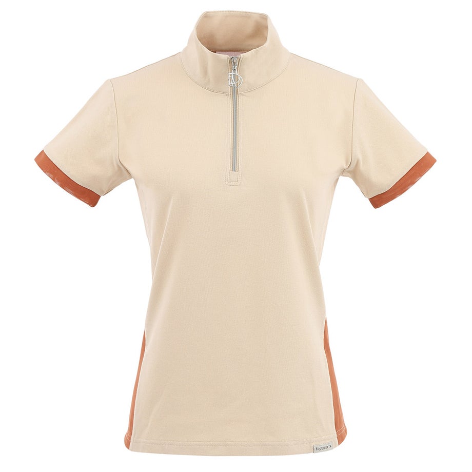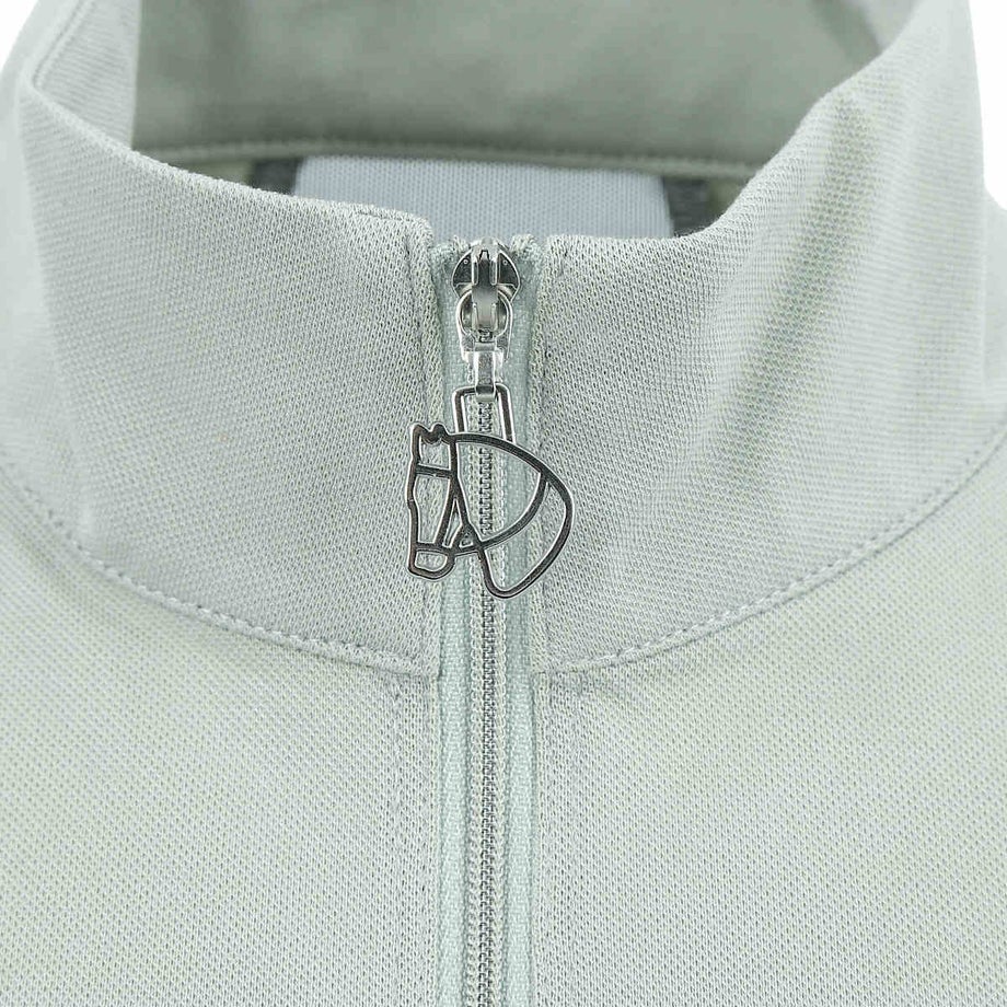 ・天然由来の冷感素材「クールモダール」採用シルクのような滑らかな肌触りと、優れた吸熱・放熱性能を両立。汗をかいてもひんやり感が持続する、真夏の騎乗に最適な一着です。・「風の通り道」を作る計算されたメッシュ配置昨年完売した人気モデルをアップデート。背面とサイドにメッシュを施し、走行中の風を効率よく取り込んで衣服内の熱を素早く逃がします。・スタイルアップを叶える視覚マジック脇のメッシュ切り替えがウエストラインをシャープに見せ、乗馬中のシルエットを美しく演出。切り替え位置は下着が見えないよう細部まで計算されています。・「透け」を軽減する安心の2枚重ね設計メッシュの一部を2枚重ねにすることで、高い通気性を維持しながらも肌の透けを抑え、上品な着こなしをキープします。・高弾力ストレッチによる圧倒的な動きやすさ前傾姿勢や大きな腕の動きにもスムーズに追従。ストレスフリーな着心地が、日々のトレーニングから長時間の騎乗までサポートします。・日差しを守るシャープなスタンドカラーハーフジップ仕様で首元をスマートに見せつつ、日焼けをガード。ジップの開閉で、運動量に合わせた自在な温度調節が可能です。・印象が変わる3つのデザイナーズ・カラーライトベージュ×テラコッタ:温かみのあるクラシックで上品な配色。ソフトセージ×ダークグリーン:森や草原をイメージさせる、ナチュラルで爽やかな印象。ネイビー×ボルドー:コントラストを効かせた、全体を引き締めるスタイリッシュな配色。