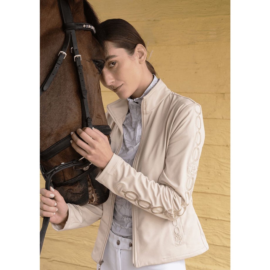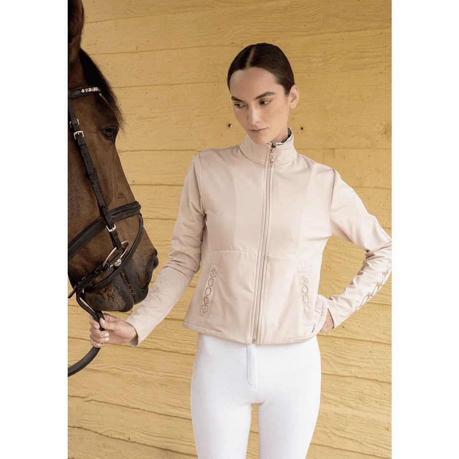 ・袖と両サイドポケットに施されたチェーンロゴ刺繍が、シンプルなデザインに時代を超えた気品と洗練をプラス。・高機能素材を使用し、スポーツシーンに必要な機能性とラグジュアリーな質感を両立。・身体のラインを美しく見せる独自のフィット感が、騎乗中も街着としてもスマートなシルエットを演出。・フロントのフルジップ仕様により、気温の変化に合わせたスムーズな体温調節が可能。・両サイドにあるポケットはファスナー付きで、中に入れたものが落ちにくい仕様。・乗馬だけでなく日常使いにも幅広く活躍。