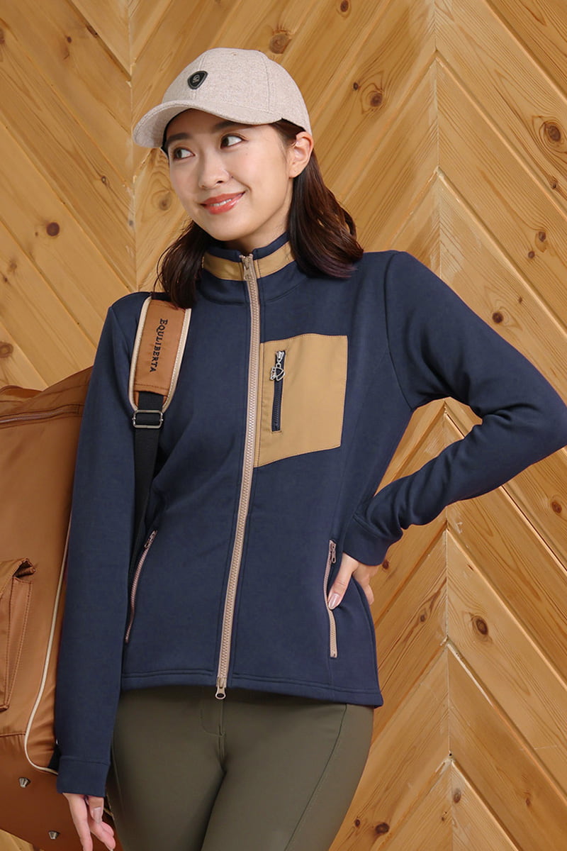 深みのあるネイビーにベージュのバイカラーがアクセントになった「EQULIBERTA アクティブ ジャケット」。