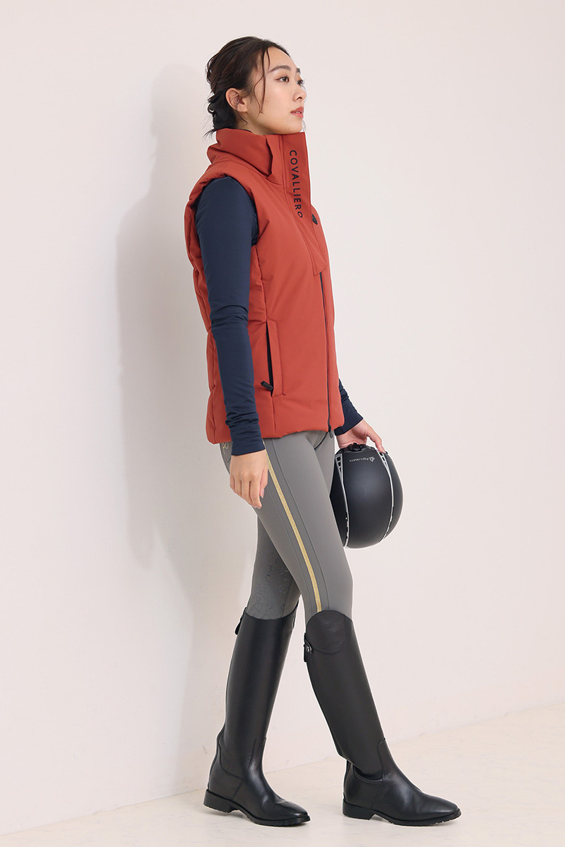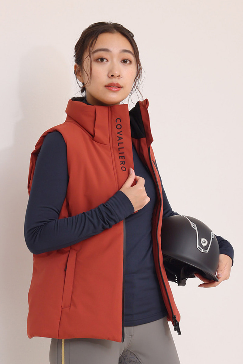 高い伸縮性で身体の動きにしっかりフィットするトップスと、動きやすさと美シルエットを両立したベストは、Covallieroの25-26AWコレクション。