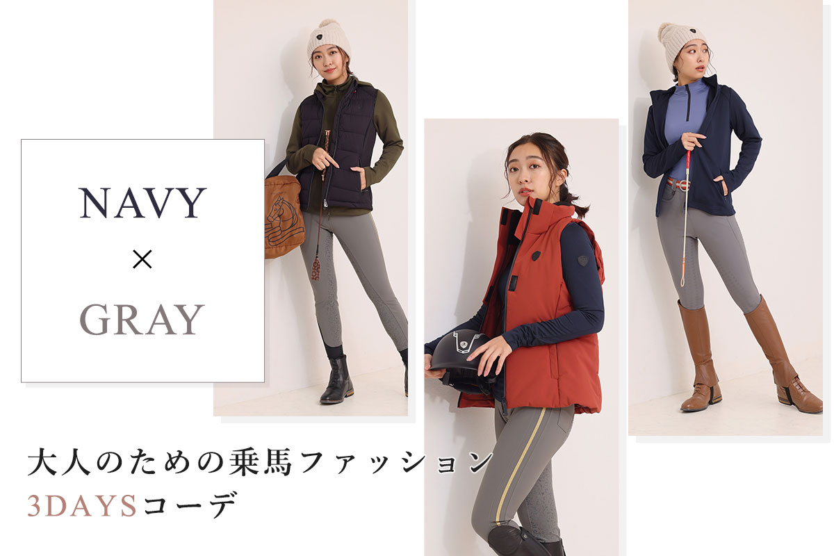 【ネイビー×グレー】大人のための乗馬ファッション 3DAYSコーデ