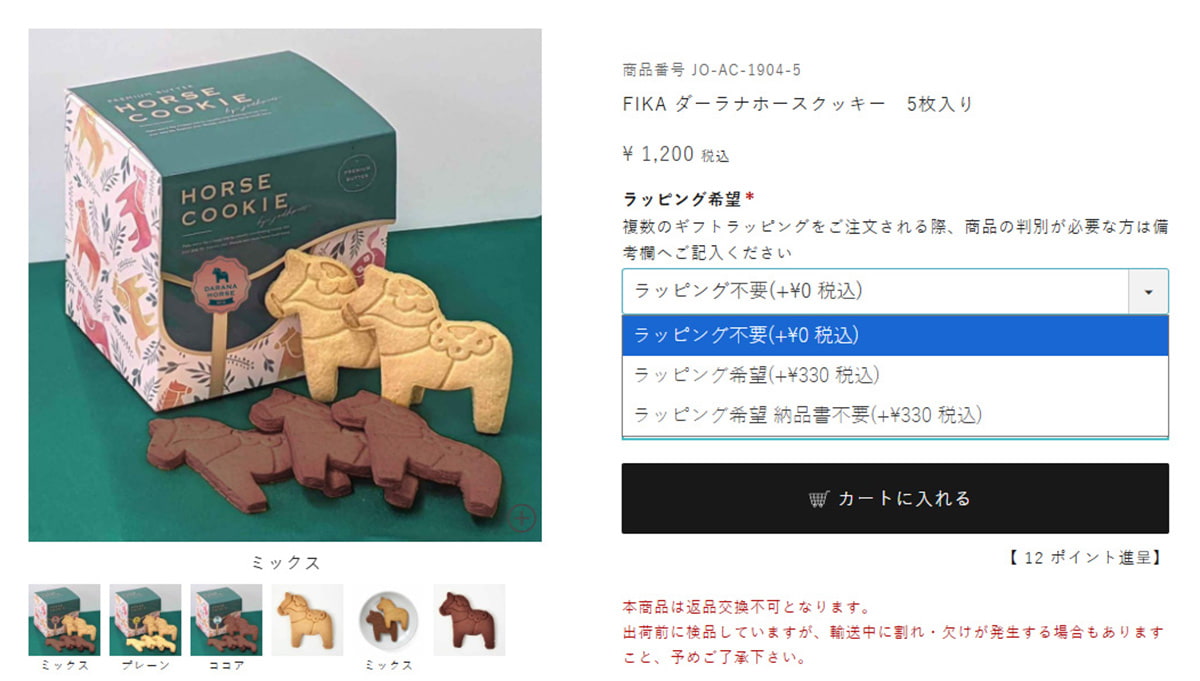 ・ラッピングを希望されない方は「ラッピング不要」をお選びいただいた後、カートに入れるを押していたければラッピング無しでの通常注文が可能です。