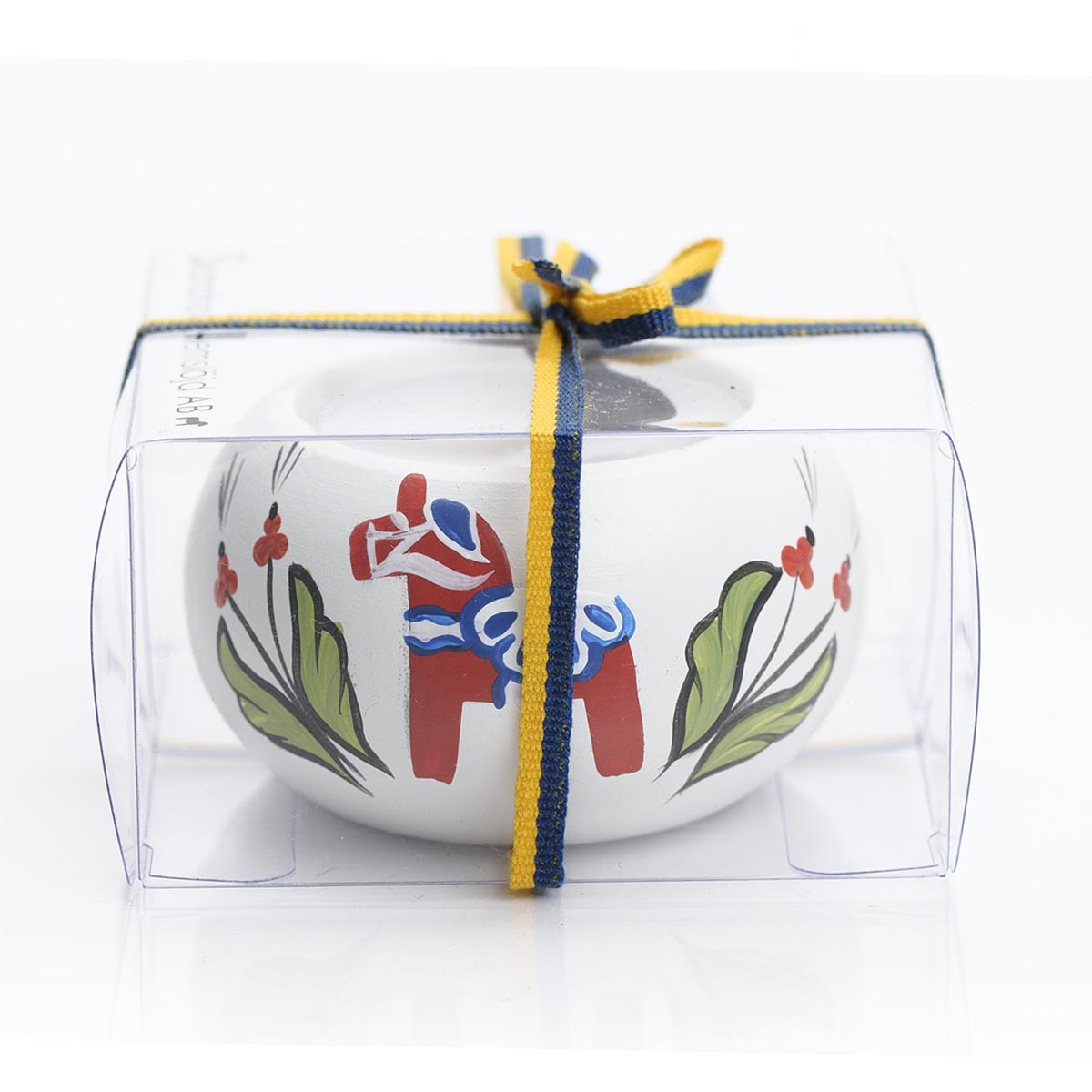 あたたかみのあるハンドペイントのダーラナホースにほっこり。パッケージ冬のギフトにもオススメな木製キャンドルホルダー。