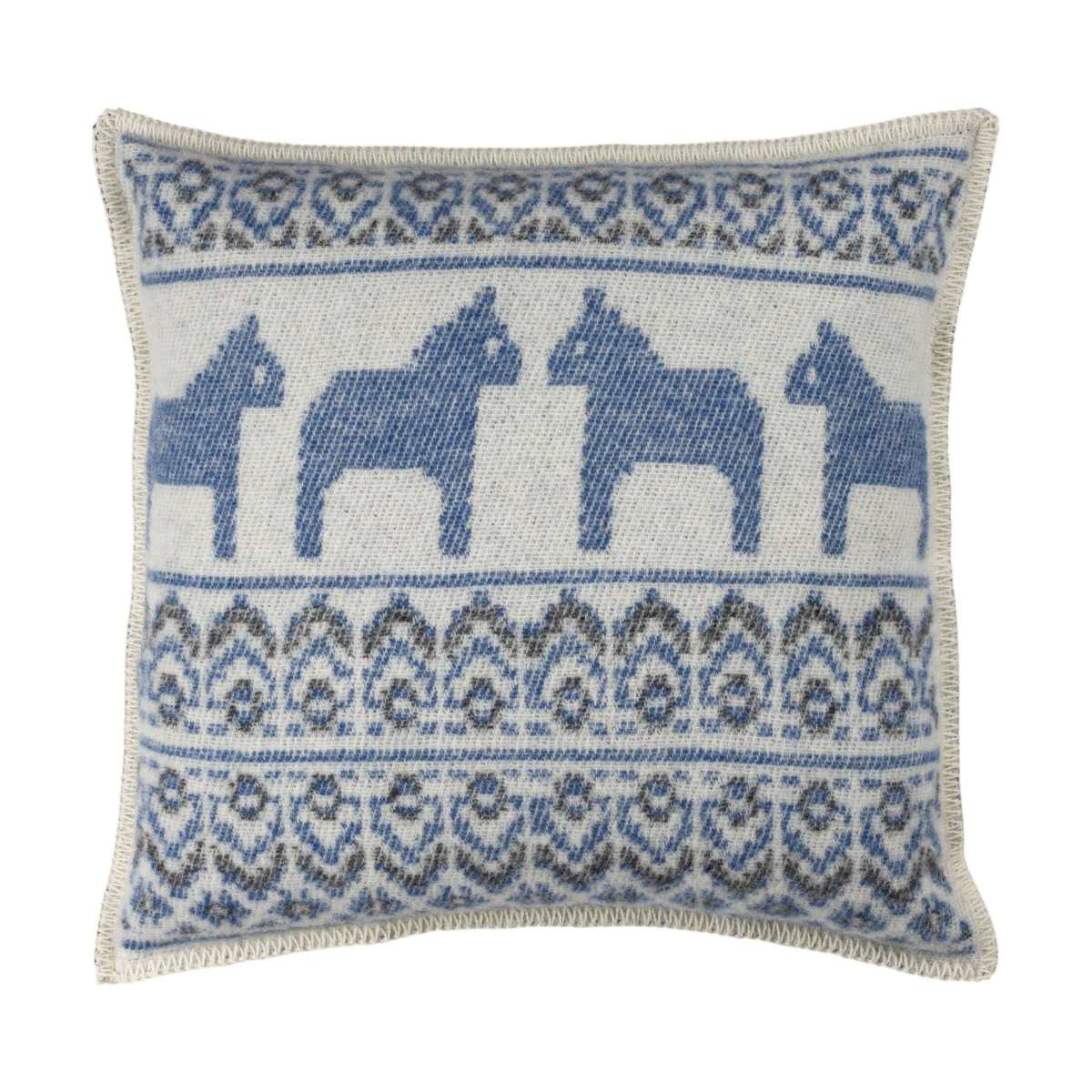 スウェーデン伝統のダーラナホース柄を織り込んだデザイン。メリノウール100%で肌触りも快適!季節を問わず使えるクッションカバー。