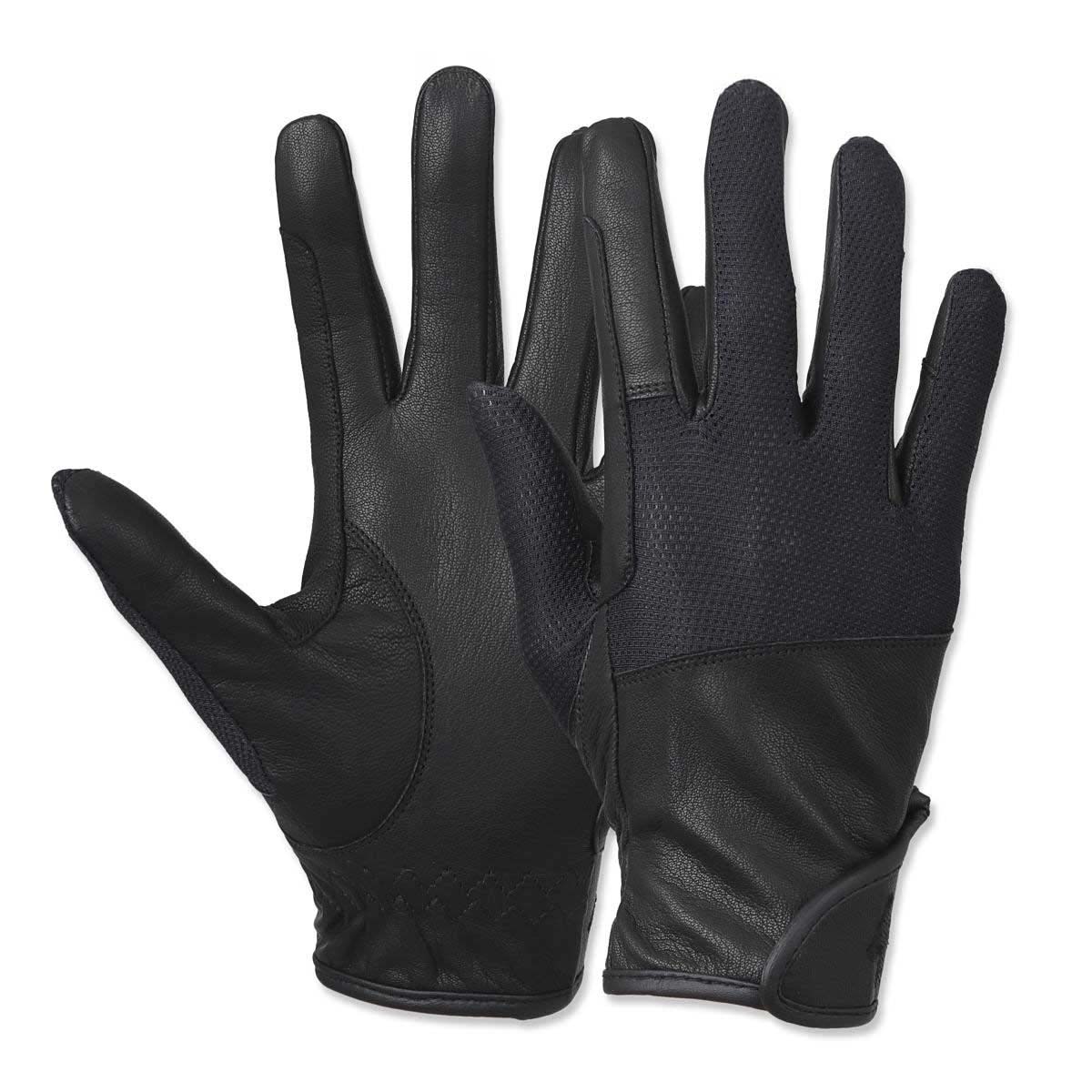 馬の刺繍がさりげないワンポイント。グリップ力も通気性のよさも大満足!上質な山羊革とメッシュを合わせたハイブリッド素材のグローブです。