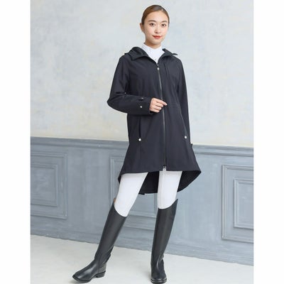 娘用(11歳156cm)に購入しました。シルエットがかわいいです。ヘルメットを被るとフードは使えませんが、裾にジッパーがあるので乗馬の際も脚が開きやすいですし、何より本当におしゃれで素敵です。2度ほど洗濯機の手洗いモードで洗濯しましたが生地のヘタリもありません。