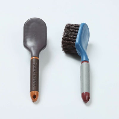 使った初日に壊れてしまって… 手入れをしていたら少し湿った土が付いてしまったので、その土を落とそうとあまり深く考えずに足元の地面を叩いたら、ブラシと柄の繋ぎ目から折れました。一回叩いただけなんですが、優しく払わないとダメでしたかね。持ち手全体がプラスチックで中に金属の芯はなく、その分軽いのですが、弱さはあるんだと思います。 ブラシそのものは、テッピに付いているブラシと強度は同じくらいで、固まった土はブラシだけでは落としきれず、コレだったらマジックブラシで良かったなと思いました。 -