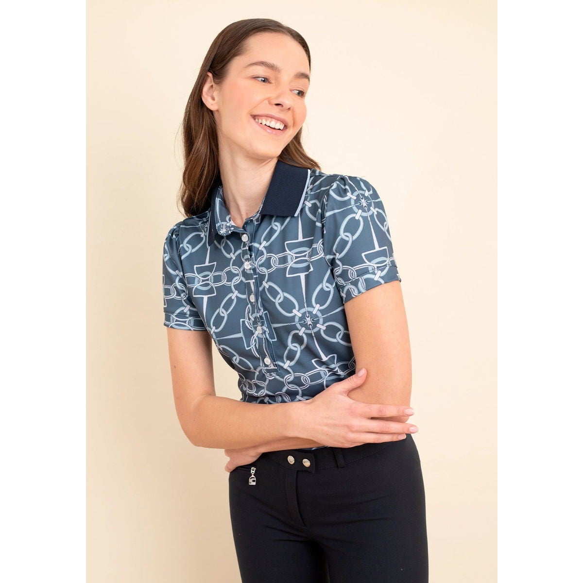 他の画像を見る ベージュ ホース&馬具のデザインで優雅に仕上げたポロシャツ。 RONNER ノエリア クラシック ポロシャツ 半袖 レディース ¥ 25,800 税込 (0) カートに入れる お気に入りに登録する