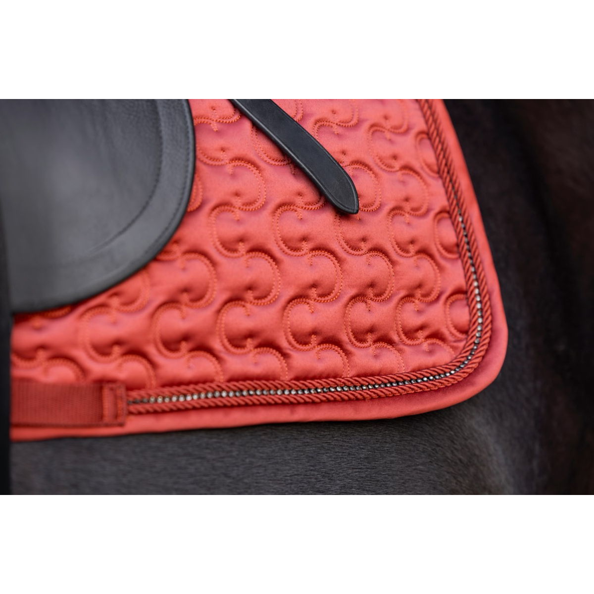 他の画像を見る レッド ブラック 華やかな縁取りが魅力。通気性と快適性に優れたサドルパッド。 Covalliero サドルパッド ¥ 9,900 税込 4.00 (1) カートに入れる お気に入りに登録する