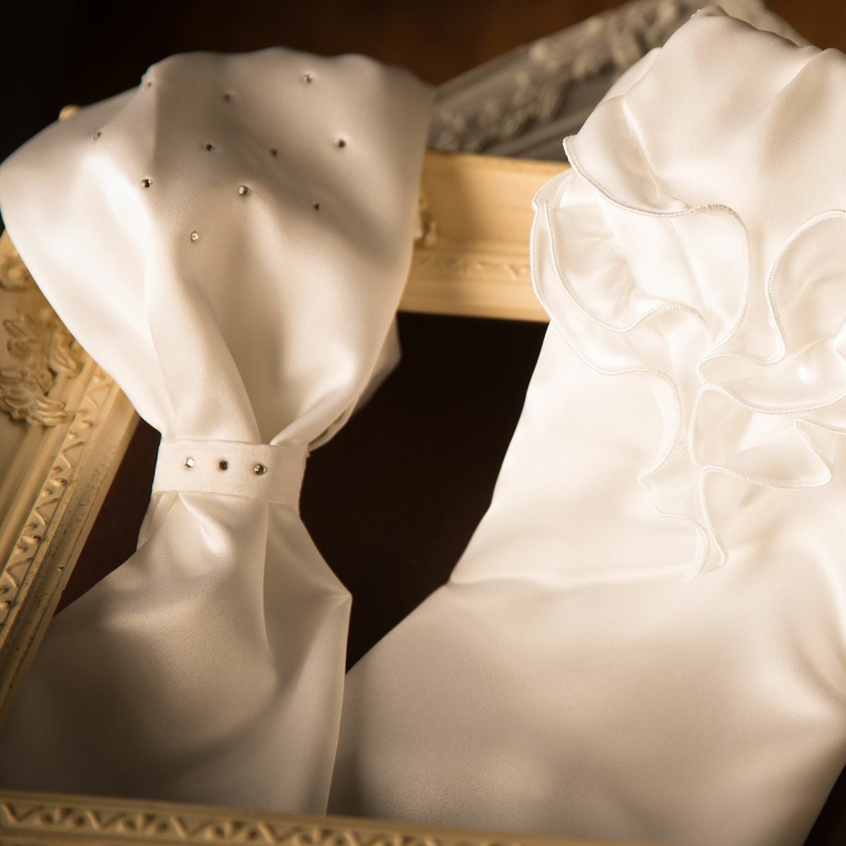 他の画像を見る ホワイト ラインストーン付き光沢生地で胸元を上品に飾るアスコットタイ。 EQULIBERTA ラインストーンアスコットタイ ¥ 3,700 税込 4.57 (28) カートに入れる お気に入りに登録する